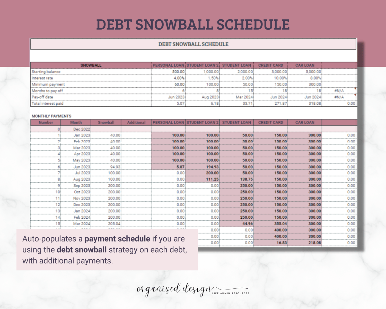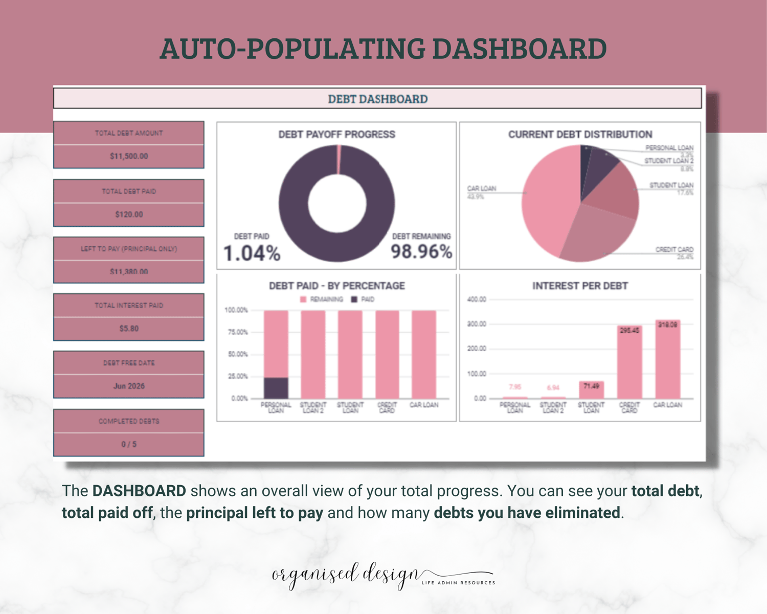 • 8 Spreadsheets + Instructions - Set-up and Calculator, Tracker and Dashboard, 4x Payment Schedules