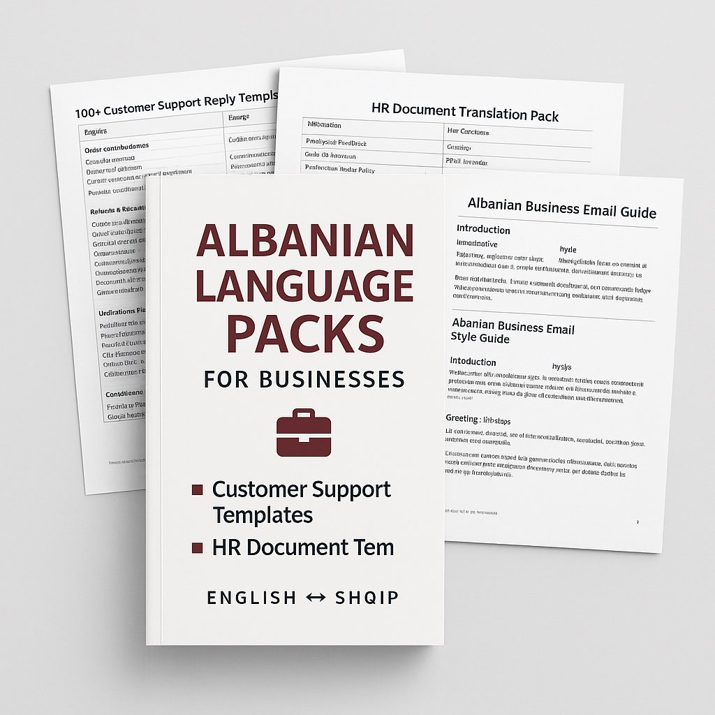 This ready-made digital bundle includes professional English–Albanian translations for your internal and external business communication. No translation agency needed!