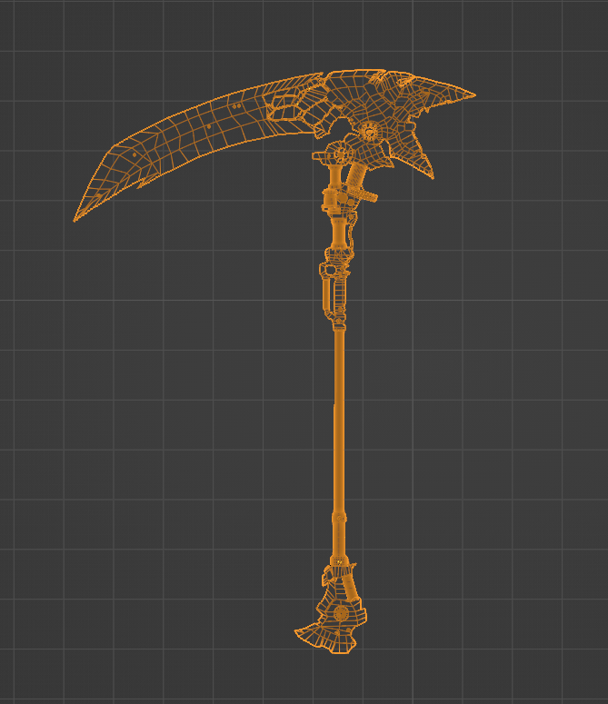 -To make the Scythe close, create an animation that rotates the upper bone while also activating the shape key included in the asset.