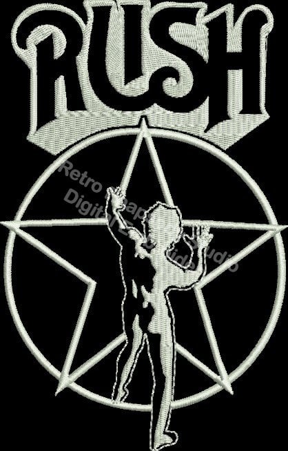 For the fans of Geddy, Alex, and Neil. This Rush design is as precise and complex as their music, ensuring a high-end look on any fabric.