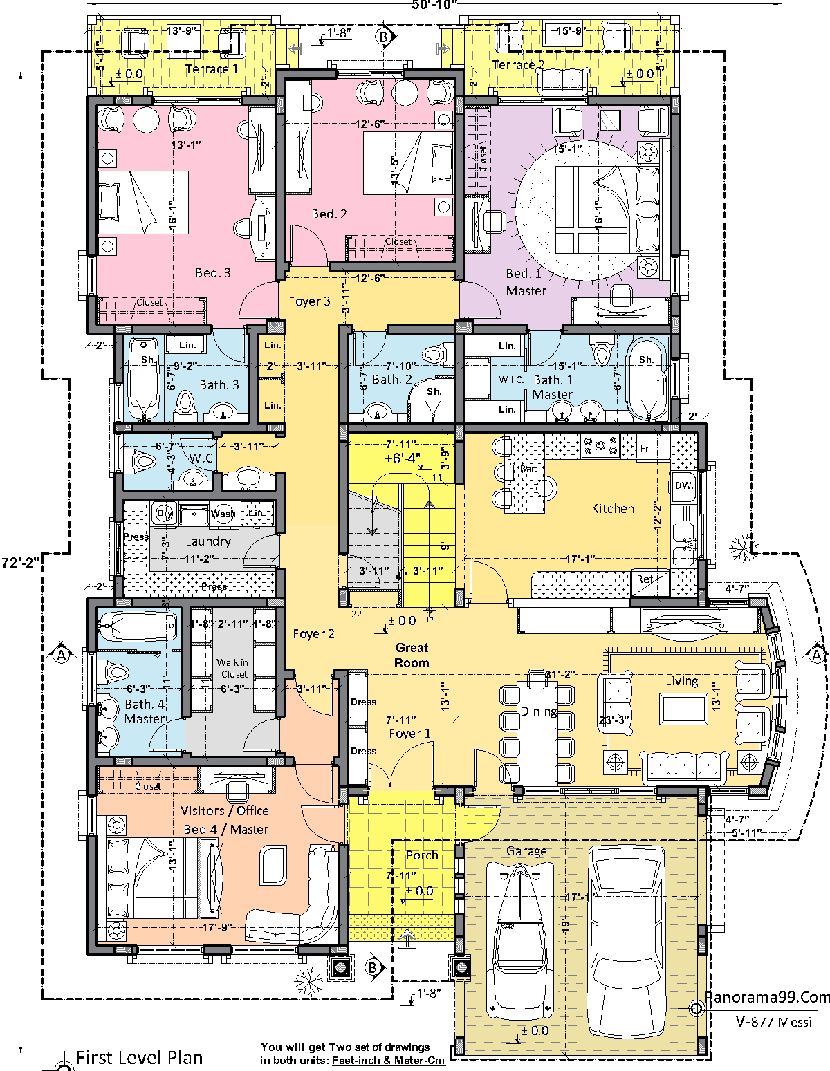 2- You will get Two Sets of detailed drawings as digital PDF files, in both units Feet and Meter.