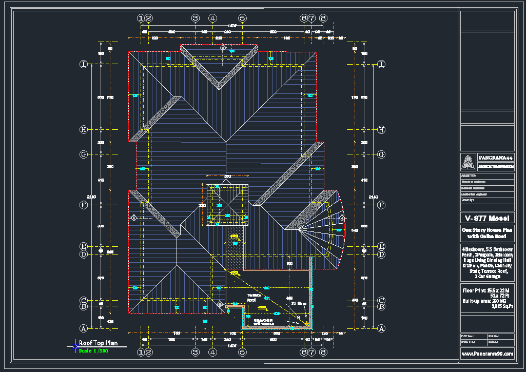 V-877| Custom One-Story House Plans – 4 Bedroom Home with Gable and flat roof