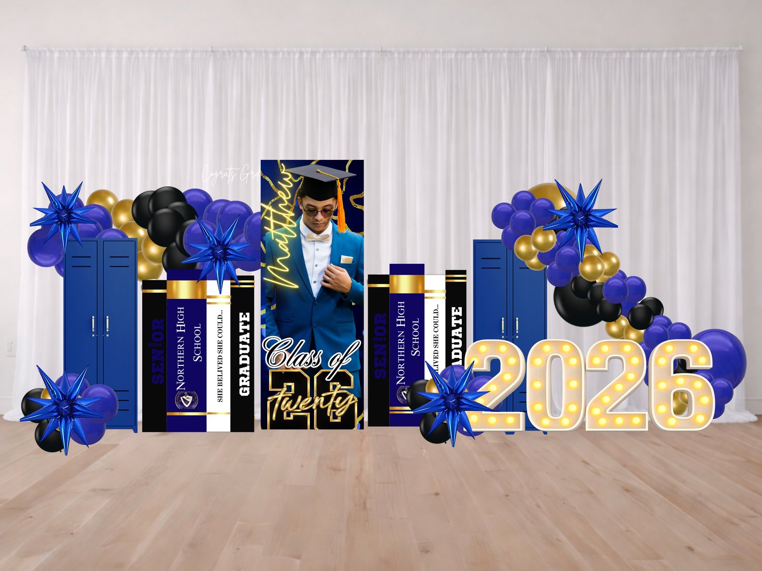 Designed for event stylists and DIY hosts who want a complete, professional graduation setup.