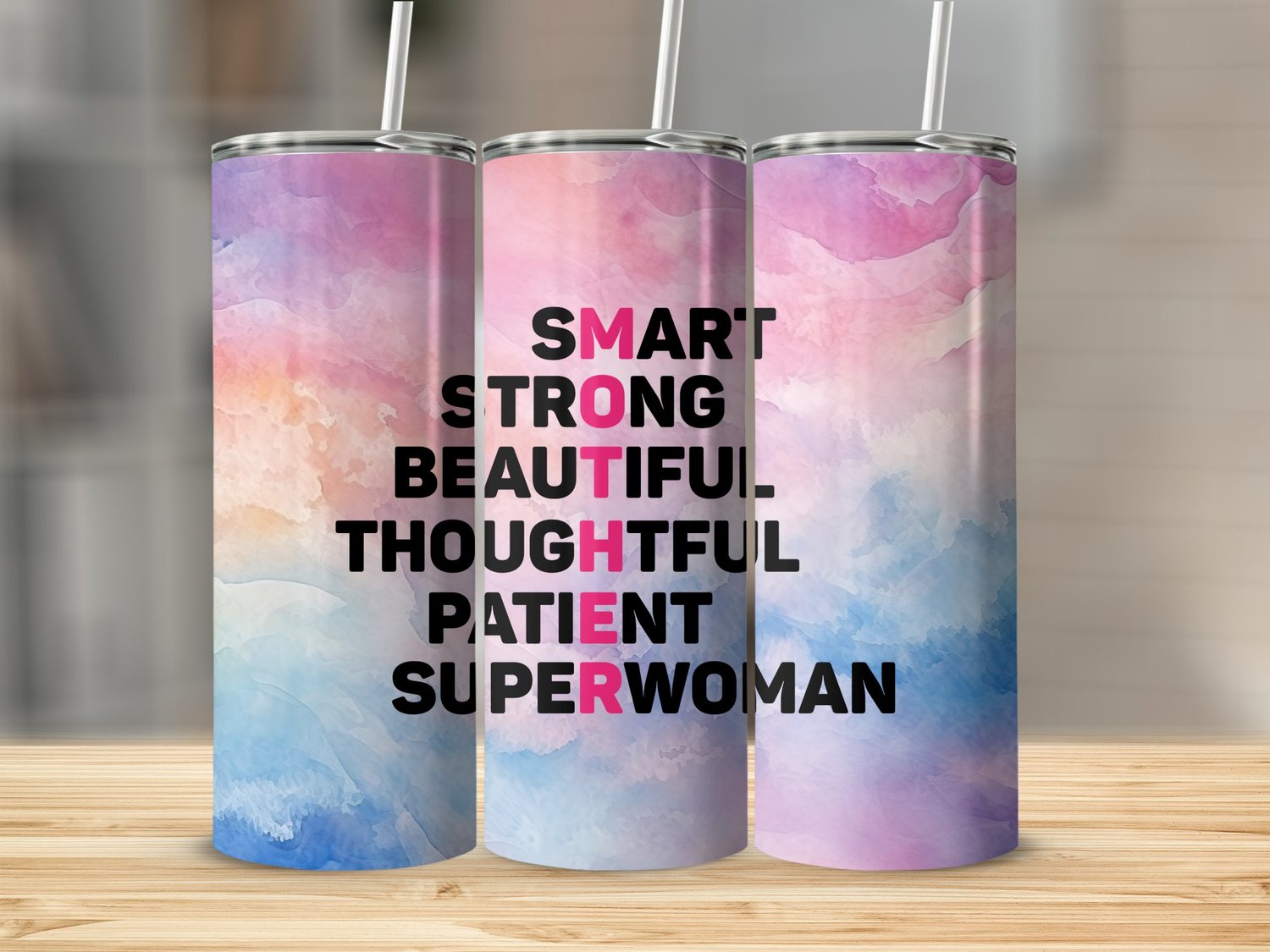 Unleash the superwoman within with our empowering "Superwoman" tumbler. This tumbler isn't just a vessel for your favorite drinks, it's a declaration of the strength, intelligence, and beauty every woman possesses. This tumbler is made of food grade stainless and steel double walls. Tumbler can hold up to 600 ml. Which can keep your beverage hot or cold for hours. Skinny tumbler with slide lid and reusable straw.