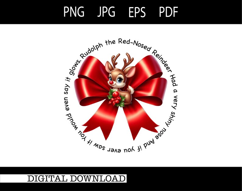 Product Title: Rudolph Red Bow Design | Christmas Sublimation for Kids