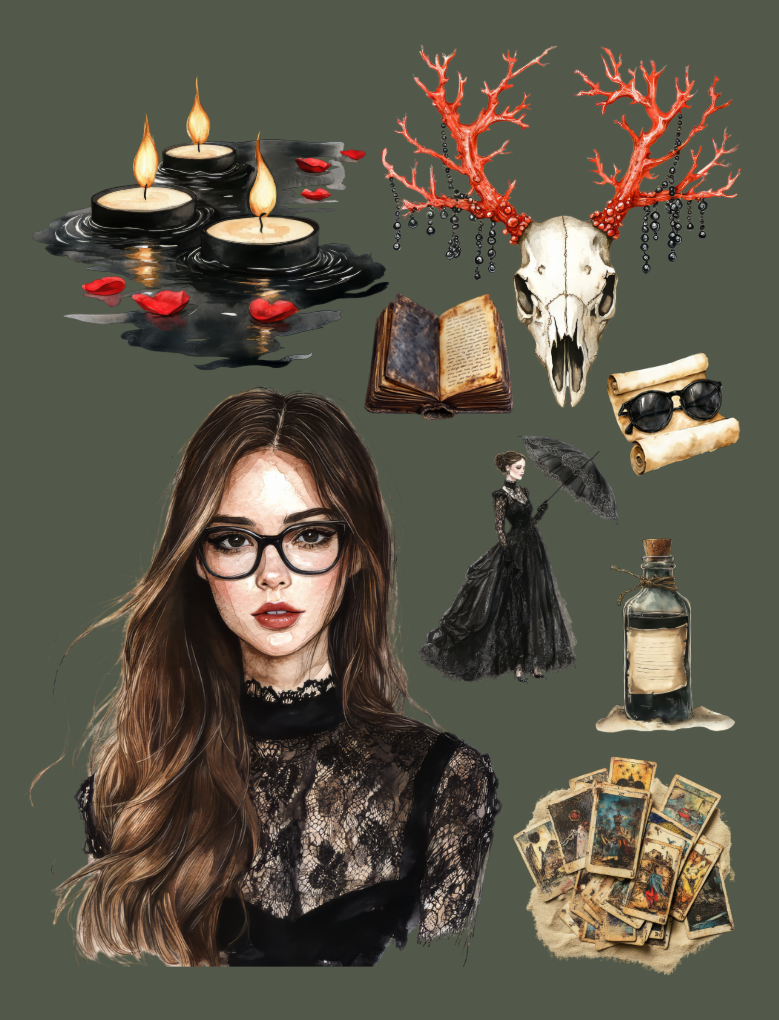 Pull out your scissors and glue and dive into the magical world of gothic ephemera in this second volume book featuring angel wings, cauldron, owl, beautiful ladies, cats, candles, horses, doorways, books, treasure chest, desk, bedroom set, mirror, portraits, moths, goblets, dresses, mushrooms, archways, stamp, crowns, castle, carriage and much more with this artistically beautiful clip art cut and collage book.