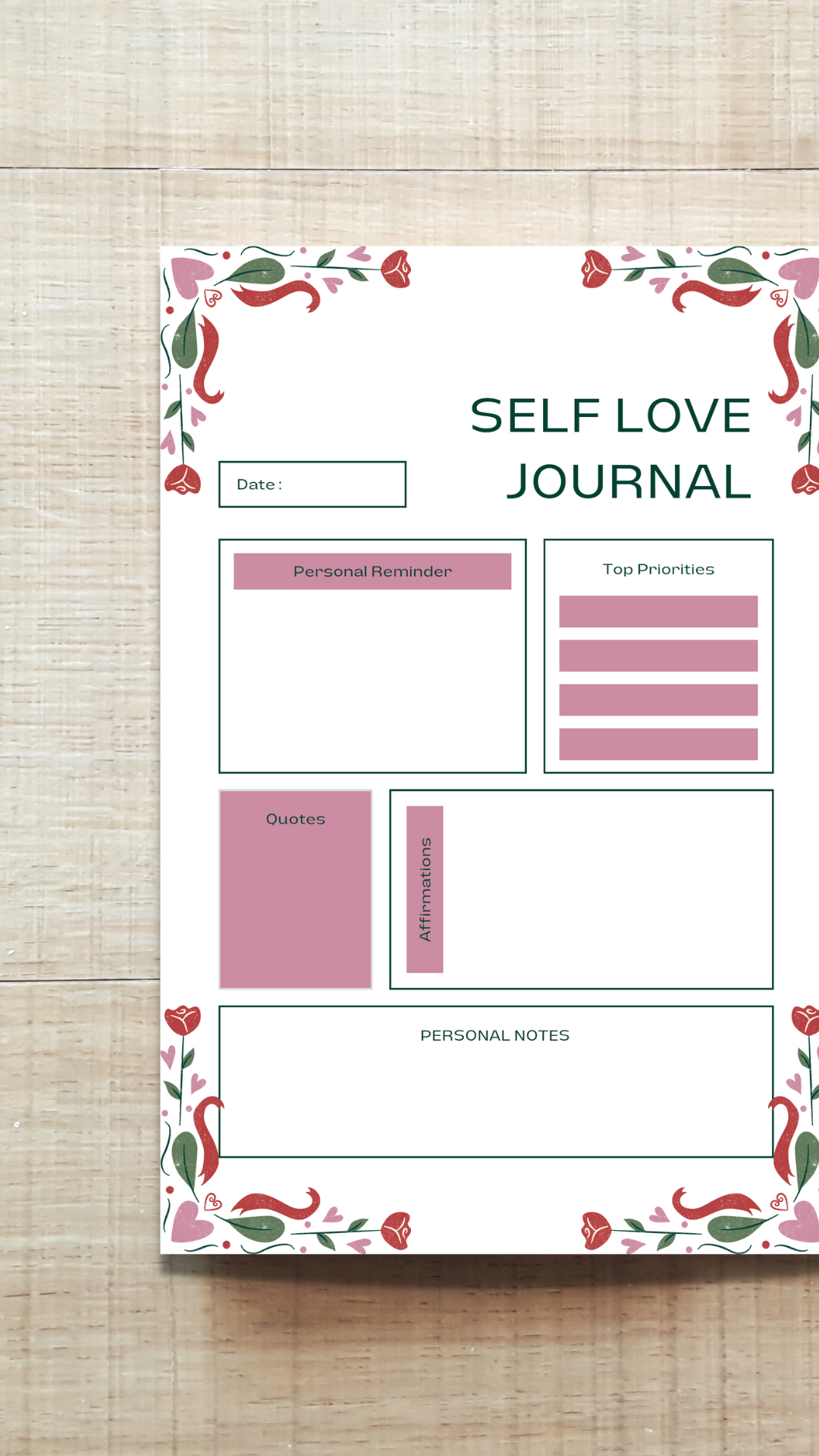Self-Care Journal Interior