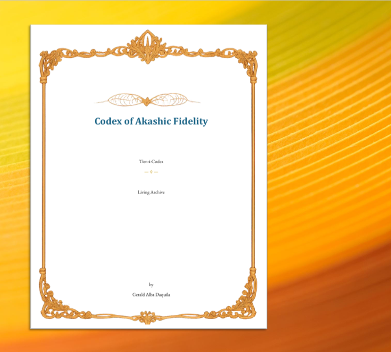 The T4 Codex Scroll discusses Akashic Fidelity, emphasizing the importance of alignment with the truth of Source. It defines resonance thresholds for accessing the Records, outlines four guiding laws, and highlights the roles of Record-Keepers. The scroll serves as a living document for maintaining purity in remembrance and protecting the integrity of the Archives.