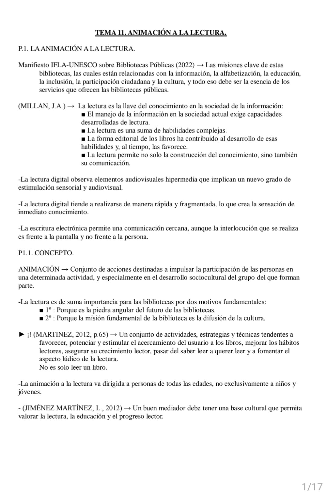 Resumen Tema ANIMACIÓN A LA LECTURA – Oposición Auxiliar de Bibliotecas