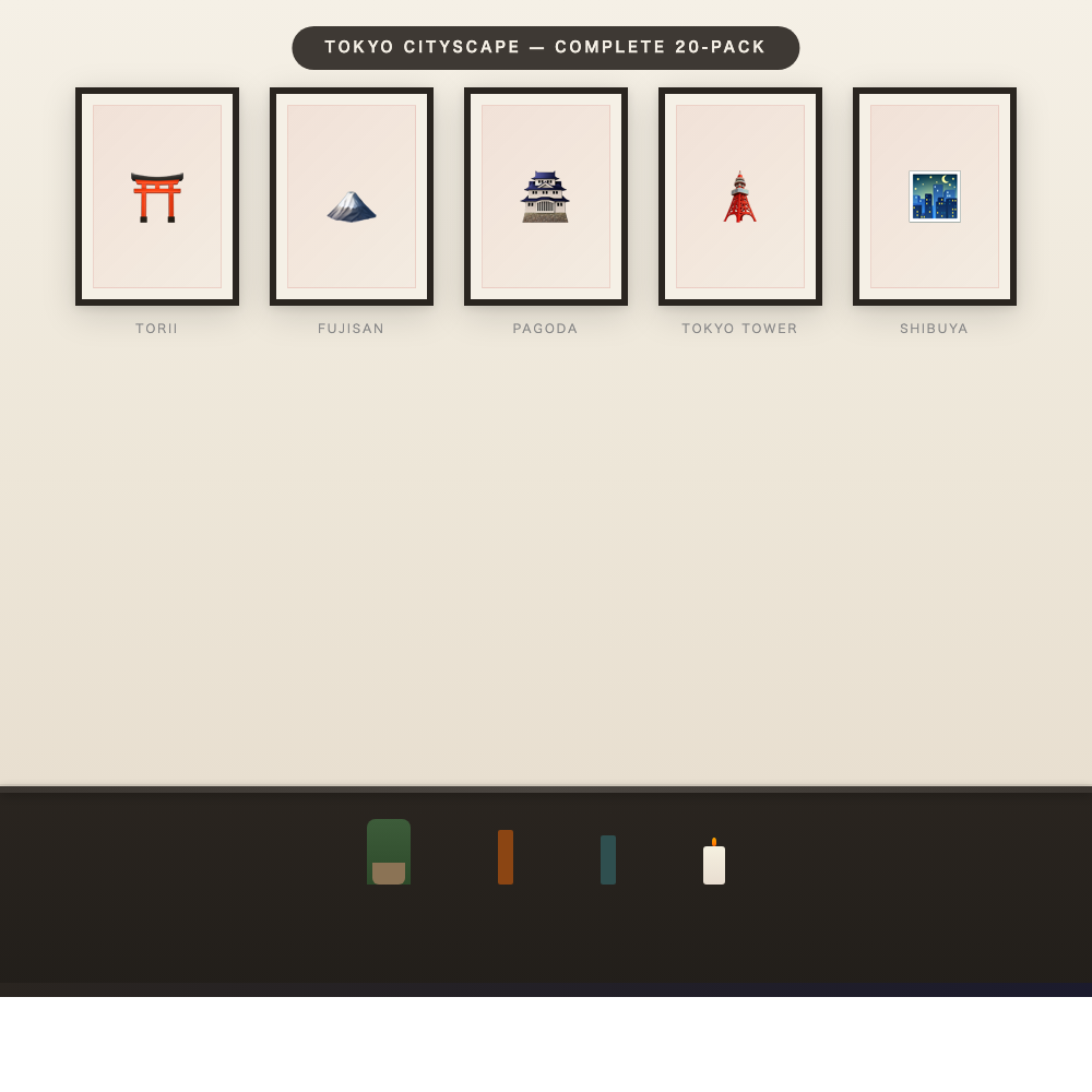 Tokyo Cityscape Complete Wall Art 20-Pack | 4 Color Palettes Japanese Landmarks
