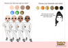 three different skin tones, three eye colours and 6 hair colours