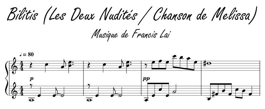 Francis Lai - Bilitis (Les Deux Nudités / Melissa) - Piano + Sheet Music