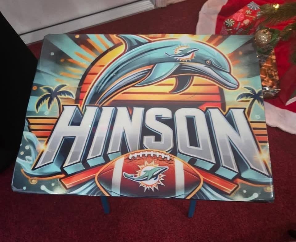 Introducing our Wooden TV Tray, a stylish and functional addition to your home! Made from high-quality wood, it provides a sturdy surface for snacks and meals while watching your favorite shows. What sets it apart is that you can Personalize it with your family photos, favorite team, or a special quote. Its elegant finish adds warmth to your décor, and the lightweight design ensures easy portability. Elevate your viewing experience with this charming, customized TV tray!