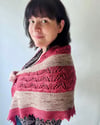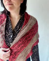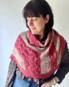 Il présente une alternance de sections en point mousse - qui offrent quelques rangs de tricot méditatif - avec des sections d’un point mêlant torsade et dentelle.