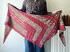 Wintersong est un châle triangulaire, qui se tricote de manière amusante, avec une “arête centrale”. Ainsi, on a jamais beaucoup de mailles sur l’aiguille, et les progrès sont visibles et motivants.