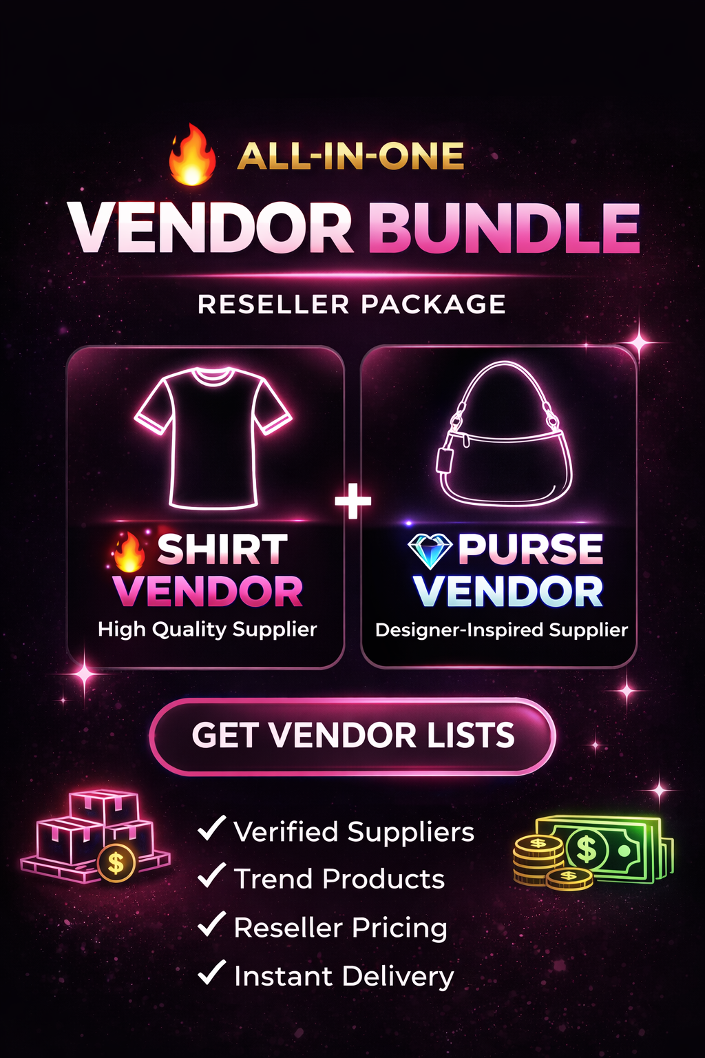 This vendor bundle includes access to multiple verified suppliers across popular fashion categories. Perfect for beginners and experienced resellers looking to scale quickly. All vendors offer competitive pricing, reliable communication, and fast shipping.