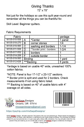 Not just for the holidays so use this quilt year-round and remember all the things you can be thankful for.