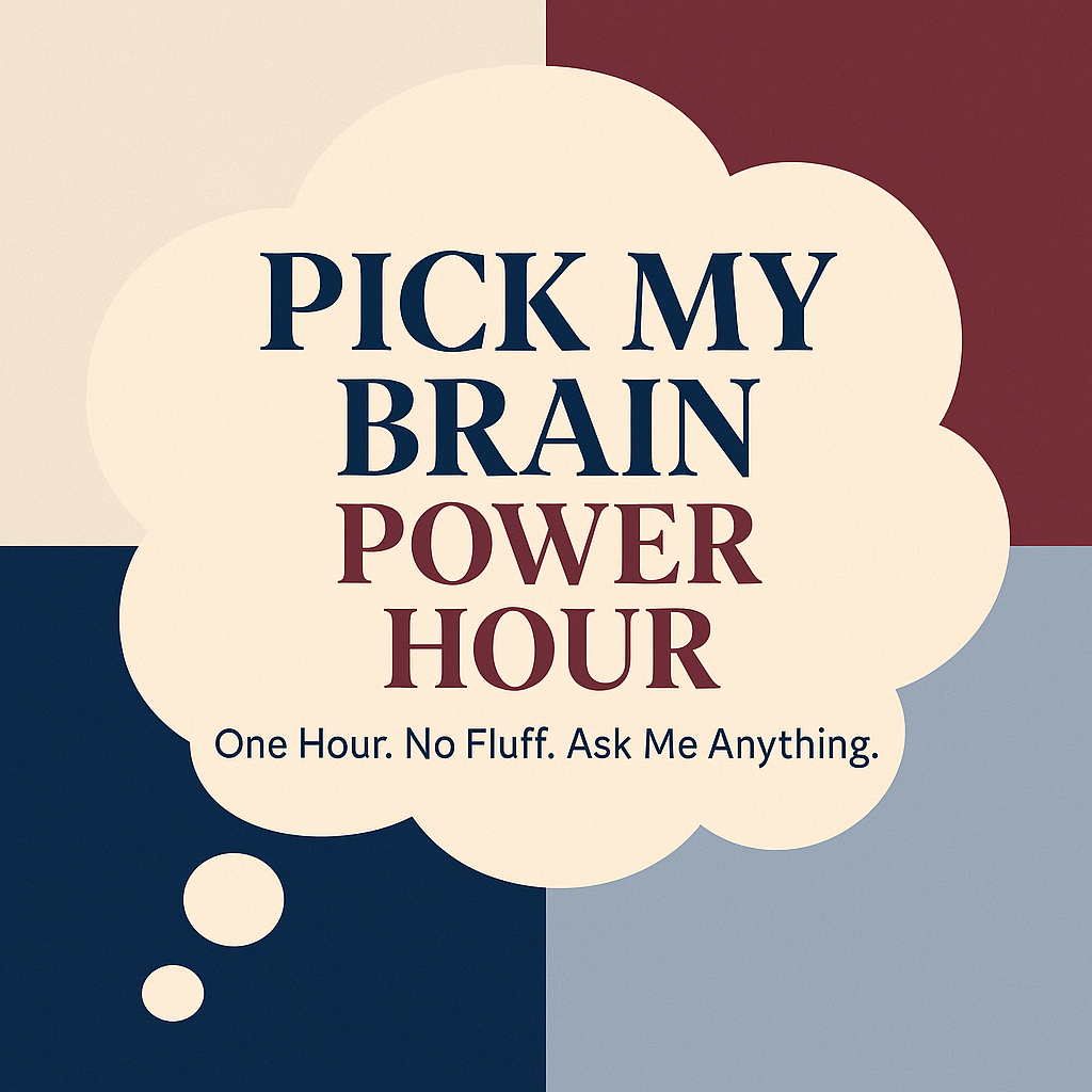 In the Pick My Brain Power Hour, you bring every question that’s been keeping you stuck, and I’ll give you direct, strategic answers.