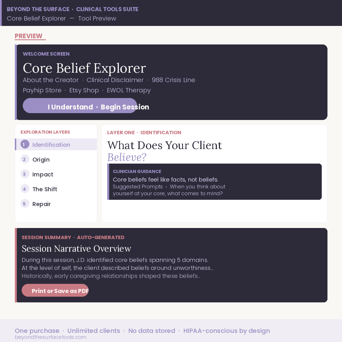 How It Works: Purchase once. Receive your tool link. Use with every client, every session, forever. No subscription, no limits.