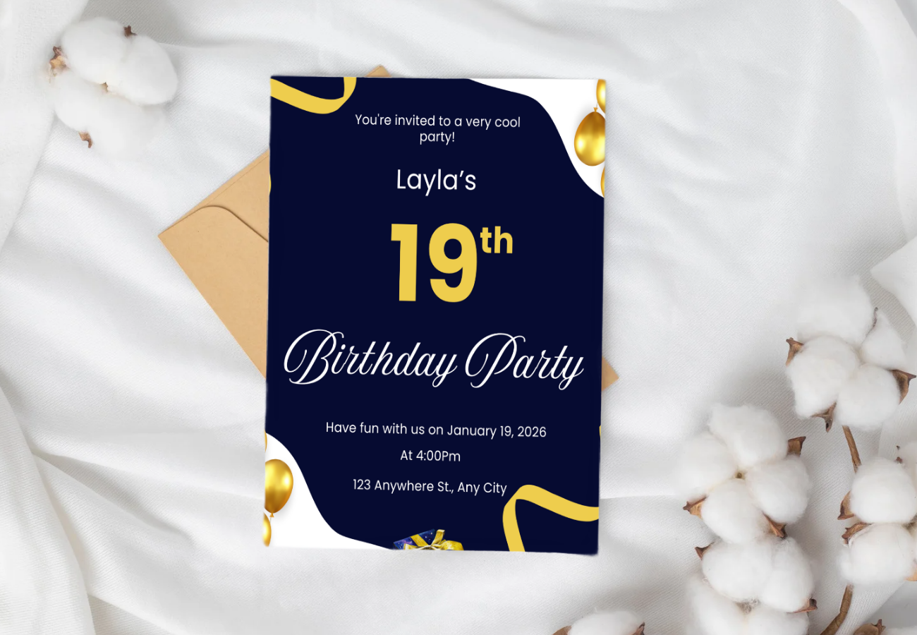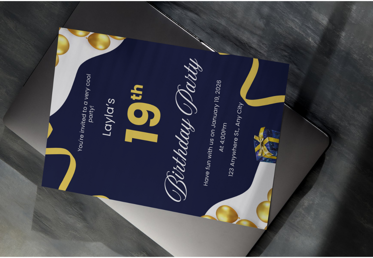 Celebrate in style with this editable birthday invitation! Whether for adults or kids, this professionally designed template is quick to customize and ready to share. No design experience needed — simply edit in Canva, download, and send digitally or print at home.
