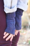 Fingerless handwarmers with mirrored ribbed cables, the Laura Mitts are worked from cuff to tip with a gusset thumb. The clean, sculptural lines of the ribbed cables offer a classic complement to every outfit.