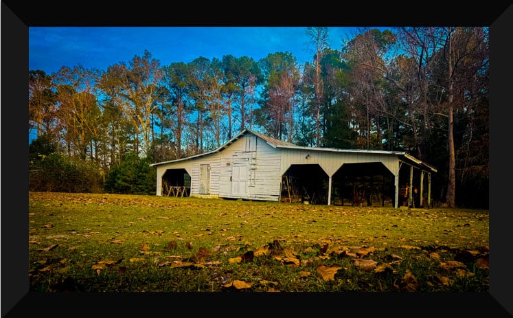 Rustic Barn located in a serene meadow landscape. This picture was taken on a cold December morning in the Low Country. Shot was taken by PROLYPHIQ. (Sean West)