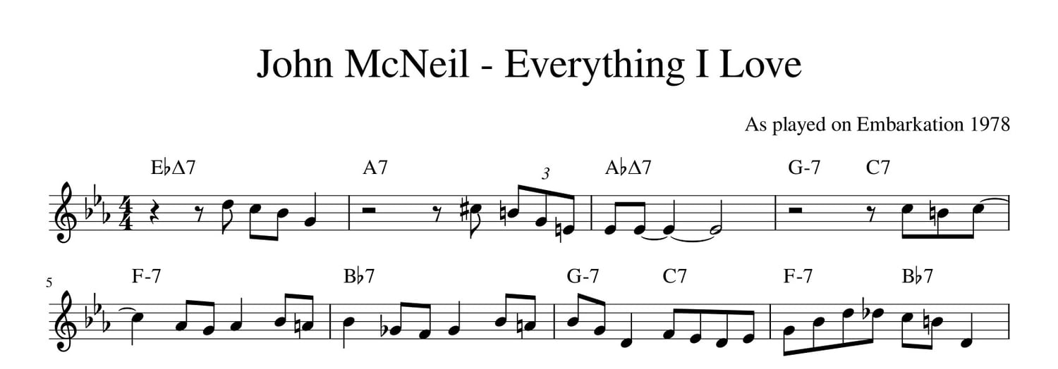 1.5-chorus transcription of John McNeil's solo on Everything I Love.