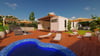 This modern house plan is an architectural masterpiece designed using three 40-foot shipping containers. The containers are elevated off the ground on a raft foundation and arranged in a courtyard layout to create a modern container floor plan with 3 bedrooms, 3 bathrooms, laundry, and an open-plan living. The living room opens onto a large outdoor deck with alfresco dining overlooking the courtyard with the pool and a spacious pool deck area, perfect for entertaining.