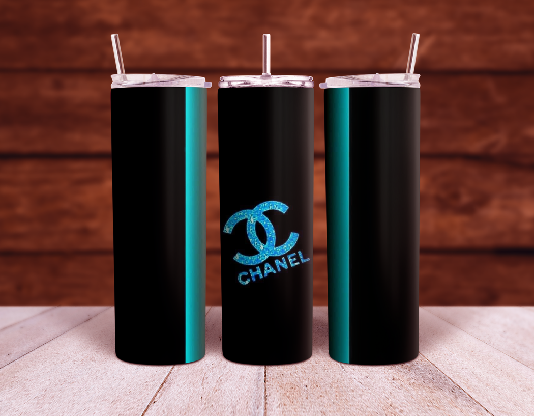 Chanel CC logo neon green 20oz and 30oz Sublimation Tumbler Wrap PNG