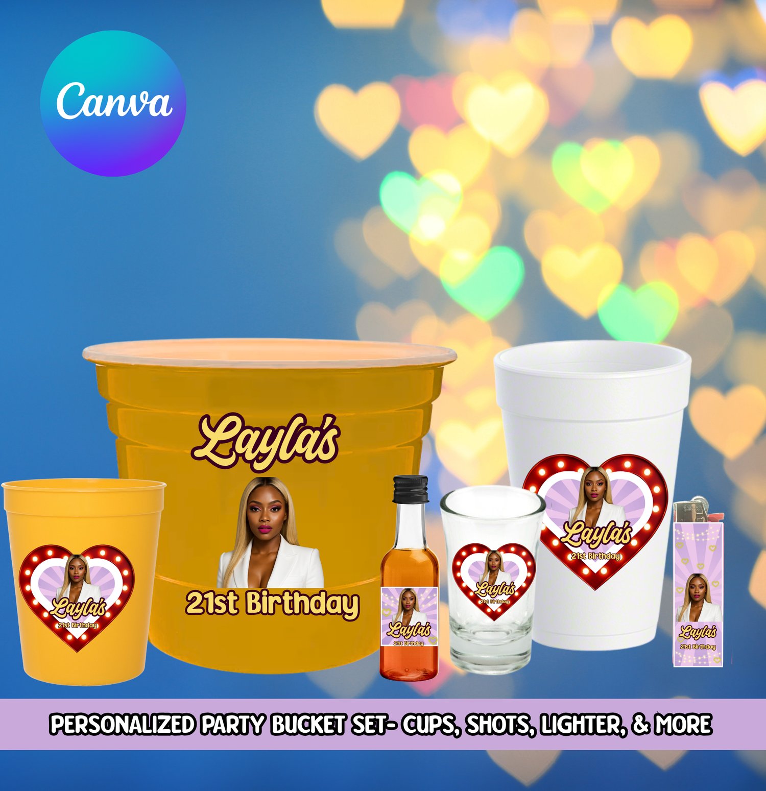 Make your celebration unforgettable with our Personalized Party Bucket Set – the ultimate custom drinkware bundle for birthdays, bachelorettes, tailgates, and any occasion that calls for fun and flair!