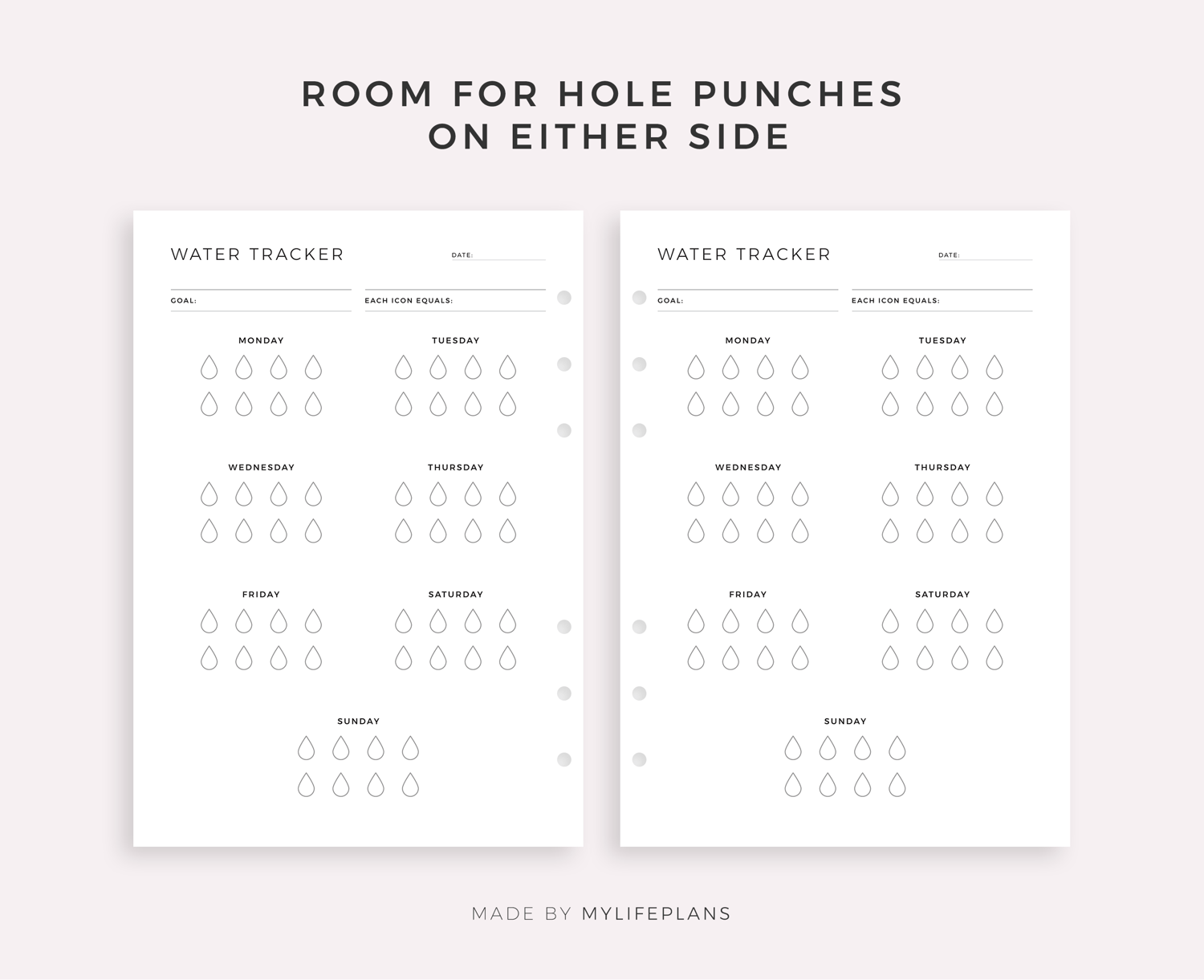 Weekly Water Tracker, Printable & Fillable, A4/Letter Size