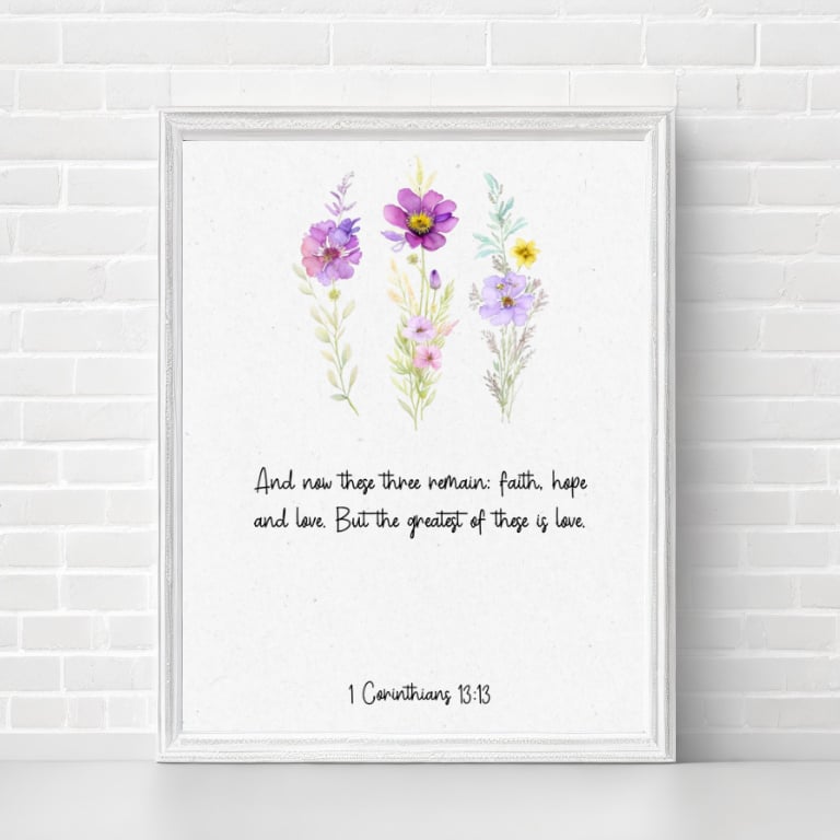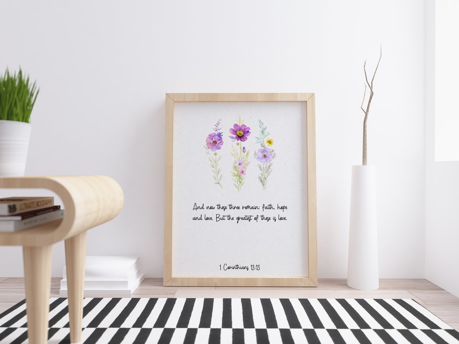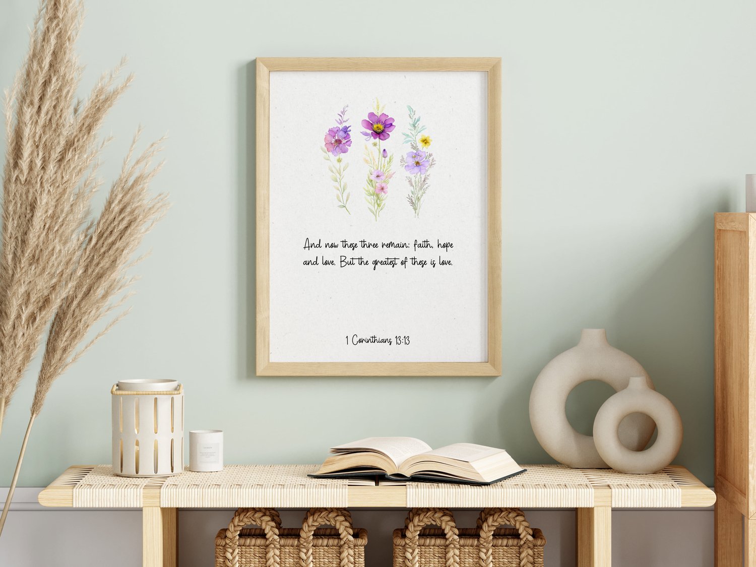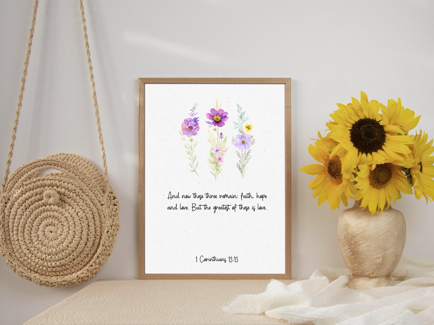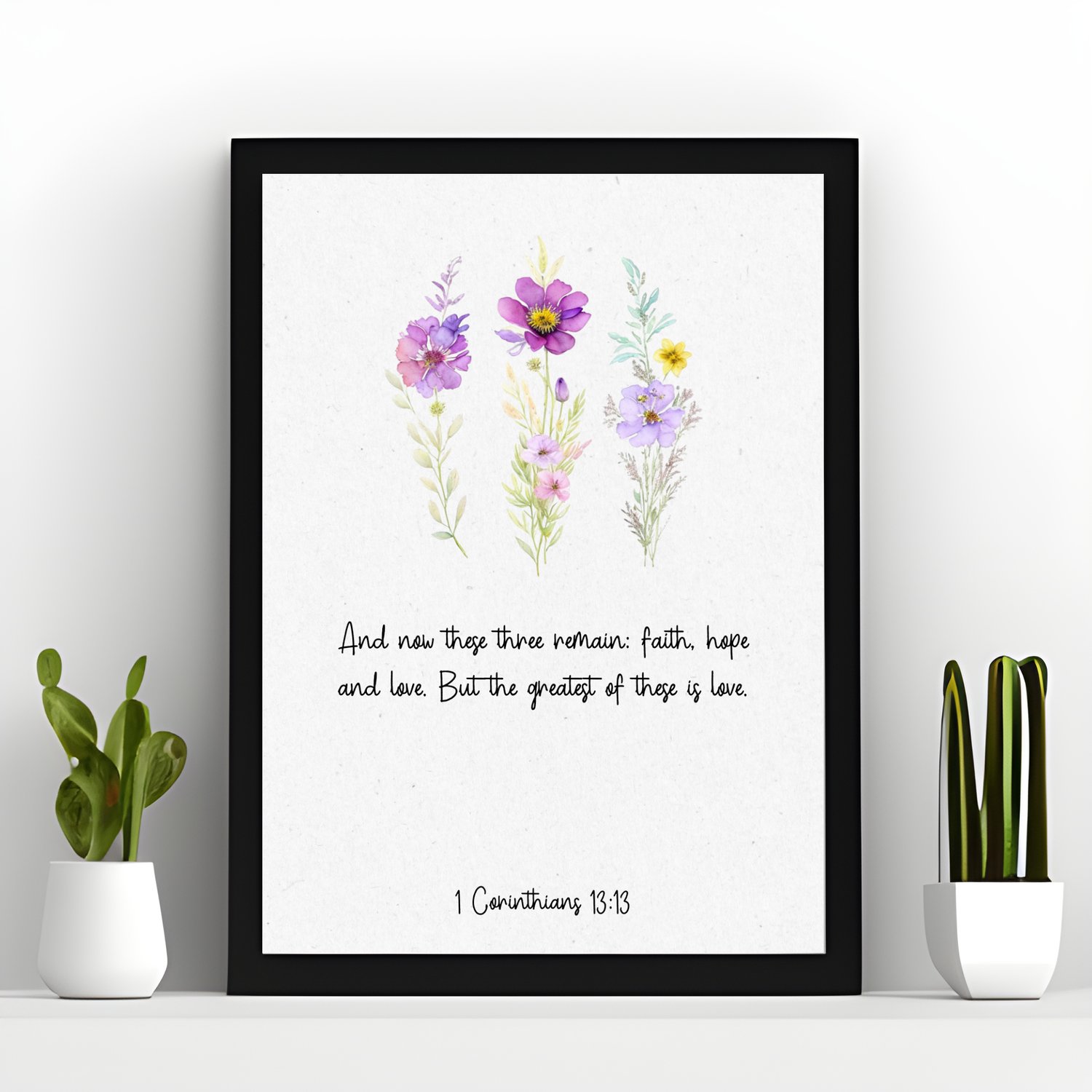1 Corinthians 13:13 Bible Verse Printable Wall Art Christian Quotes Poster