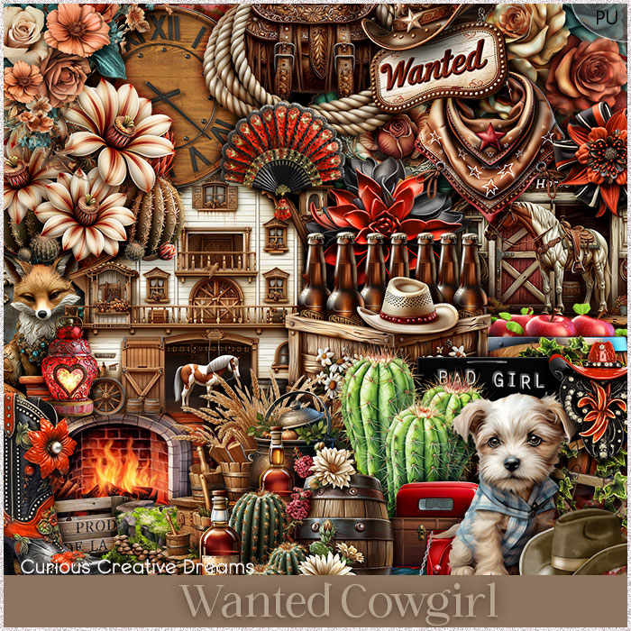 Wanted Cowgirl Comes with 110 Elements , 15 Frames and 20 papers , AI Included. Personal Use Only