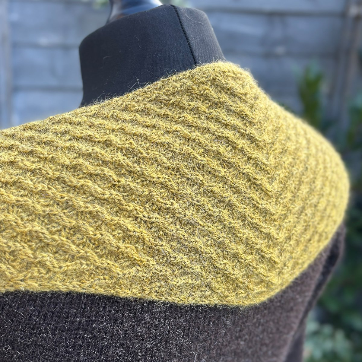 Saltash is a triangular scarf knitted from corner to corner using an 8-row cable repeat. Four sizes are given, so there is the option to knit a wee scarflette or something more like a shawl. The pattern is worked in three sections. Beginning with an i-cord cast on (or standard cast on if preferred), stitches are gradually added along one side of the shawl until you reach the centre, where you work a few rows straight before decreasing to the opposite point. Cables are worked throughout and follow the direction of the increases and decreases, changing direction at the halfway point. The edges of the scarf are worked in i-cord for a neat finish. The pattern is both written and charted.
