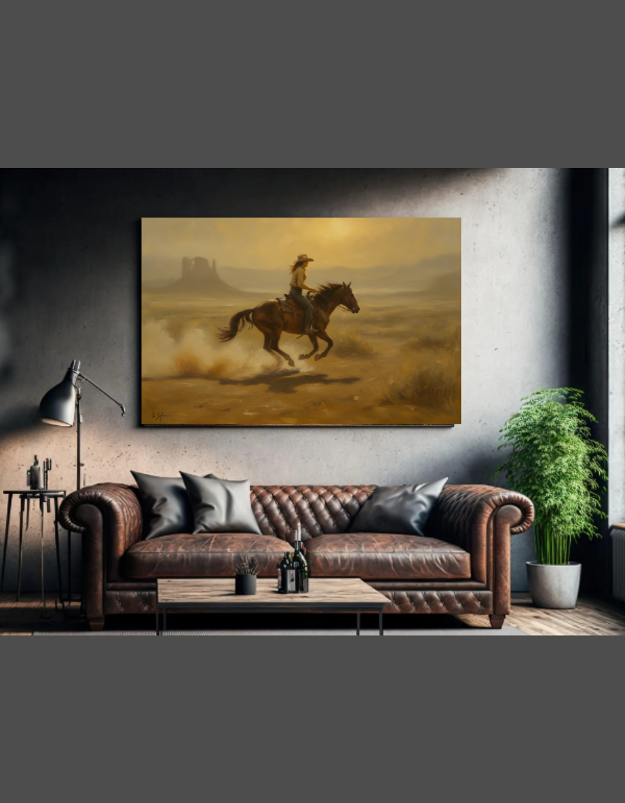 Printed on premium matte paper or canvas, this horse art piece measures up to 24x36 inches for bold impact, or scale it down for gallery walls. It's more than decor – it's a daily dose of empowerment and adventure!