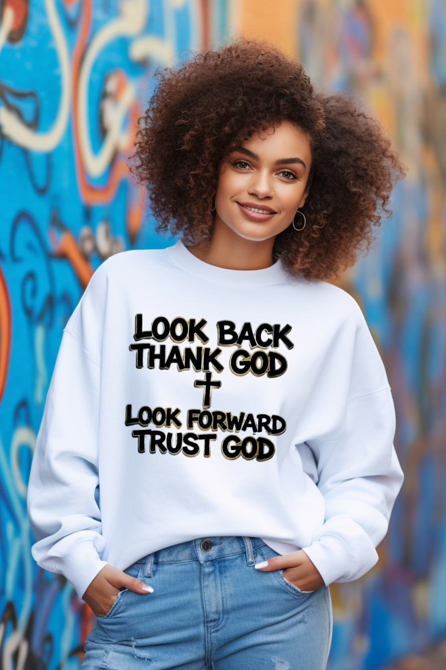 Look Back Thank God Look Forward Trust God PNG | Christian Faith Quote Design | Religious Shirt Graphic | Instant Download