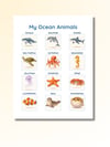 → Letter tiles for cutting out → Bonus poster "My Ocean Animals" with all 12 in one grid