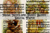 Music Notes Funny Bunny Digital Paper, Music Notes, and Watercolor Funny Bunny vintage paper, Watercolor Fluffy Bunny Background.