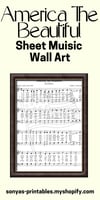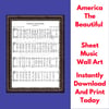 America The Beautiful Sheet Music Wall Art | America The Beautiful Sheet Music Wall Decor | Amercia The Beautiful | Printable Patriotic Sheet Music Wall Art