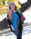 Bright beams of sunlight alternate with streaks of dappled shade in this parallelogram-shaped stole. Sun and Shade combines lacey zigzags with sections of easy mosaic knitting. Perfect for pairing a full skein of a main color with a gradient set, this project offers endless possibilities for choosing colors, from highcontrast arrangements to subtle ombré effects. Its width can be customized by adding or subtracting pattern repeats.