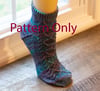 Techniques: Knitting in the round, heel flap, gusset, increases, decreases, toe up, cables.