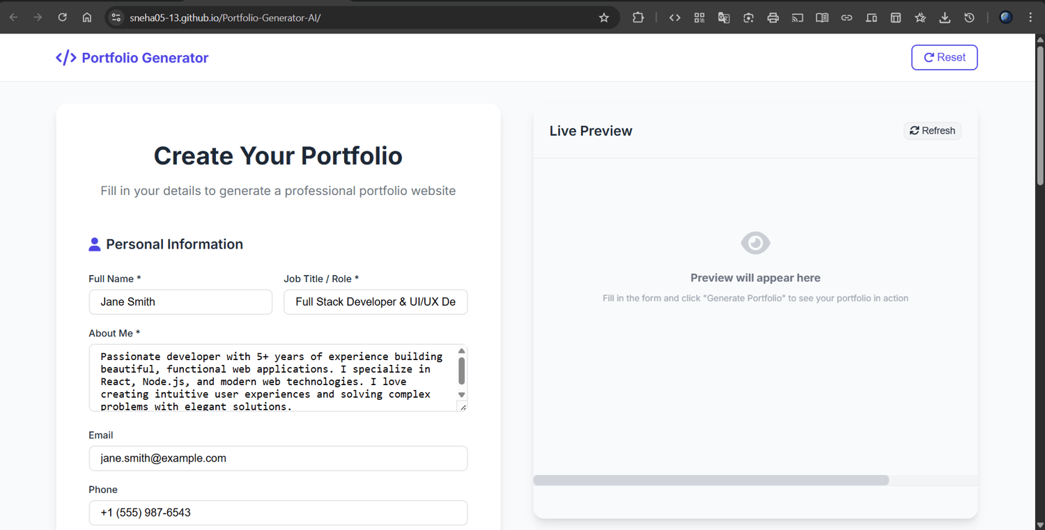 AI Portfolio Generator – Personal Website Builder (HTML CSS JS)