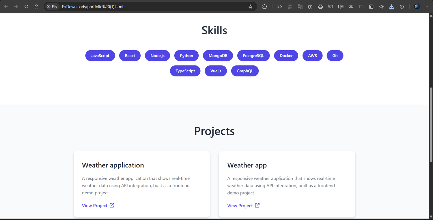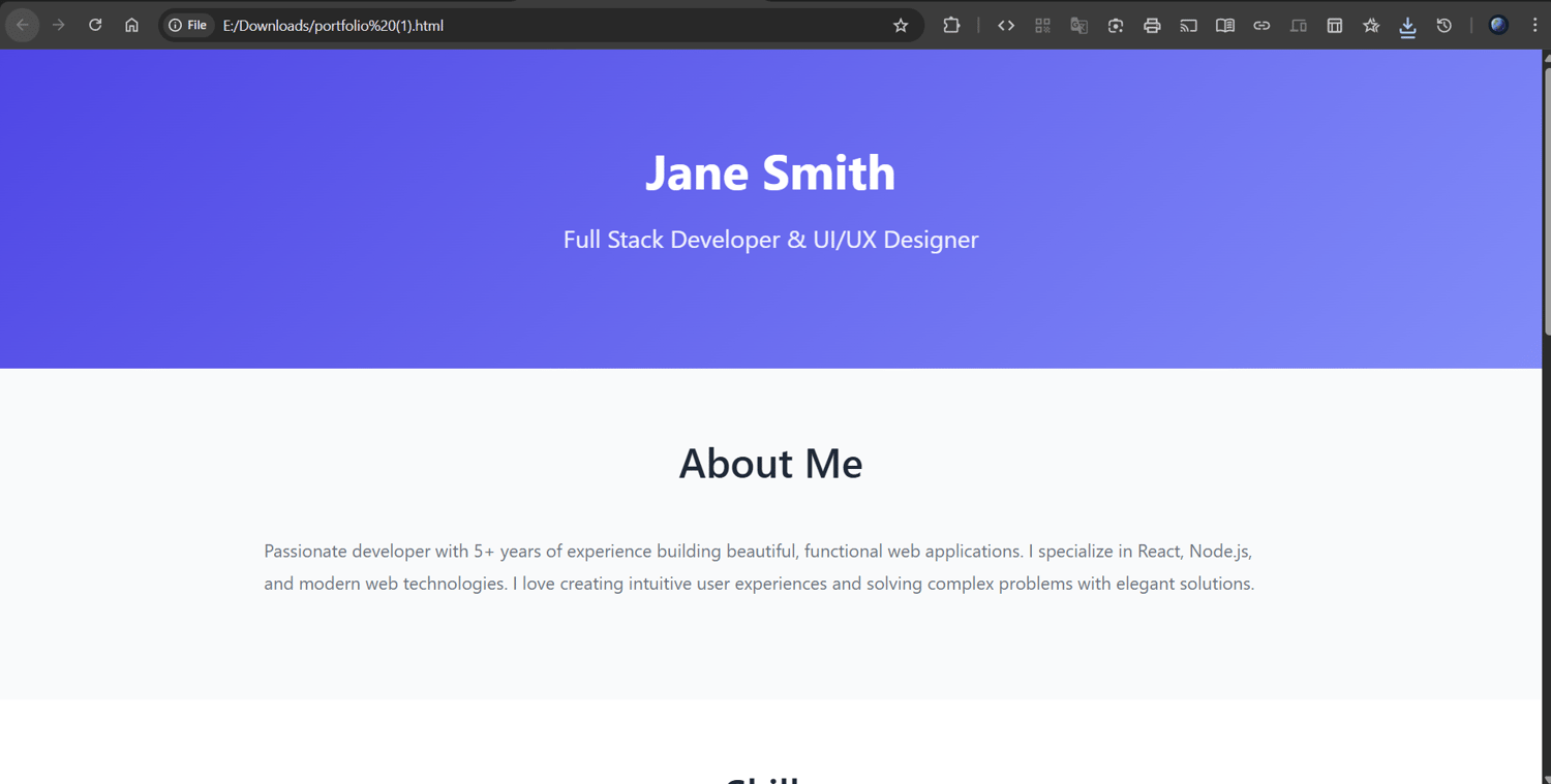 This AI-powered Portfolio Generator helps you instantly build a clean, modern, and fully responsive portfolio website using simple HTML, CSS, and JavaScript.