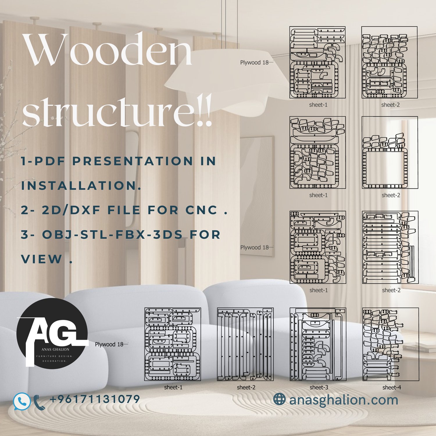 The wooden structure of this sofa will be easy for you. Just place the design file on the CNC machine and you will easily have more than one copy quickly.
