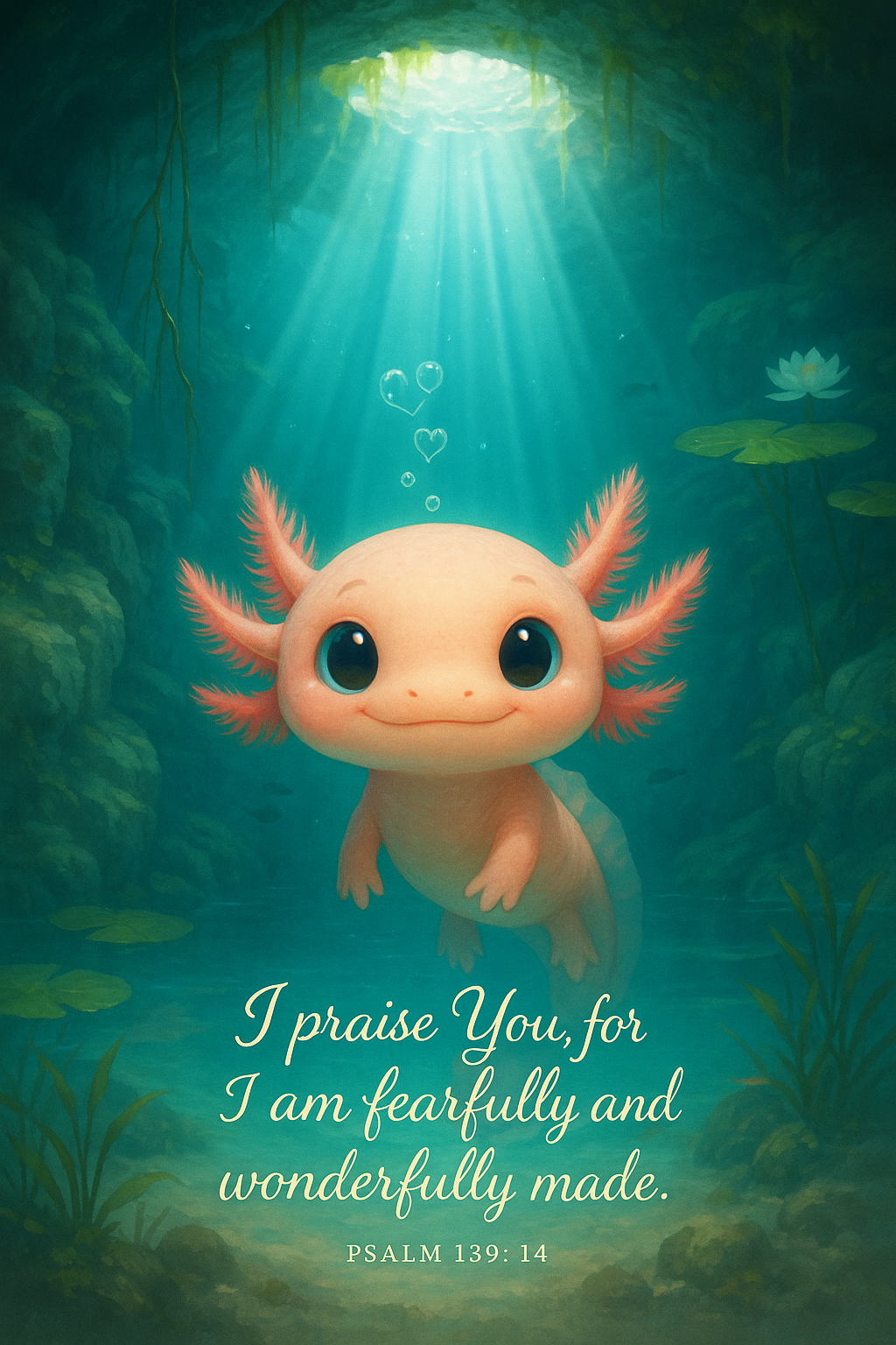 π π Christian Self-Worth Wall Art β Psalm 139:14 Axolotl Poster β Faith-Based Printable for Devotion, Homeschool & Ministry β Wonderfully Made Theme