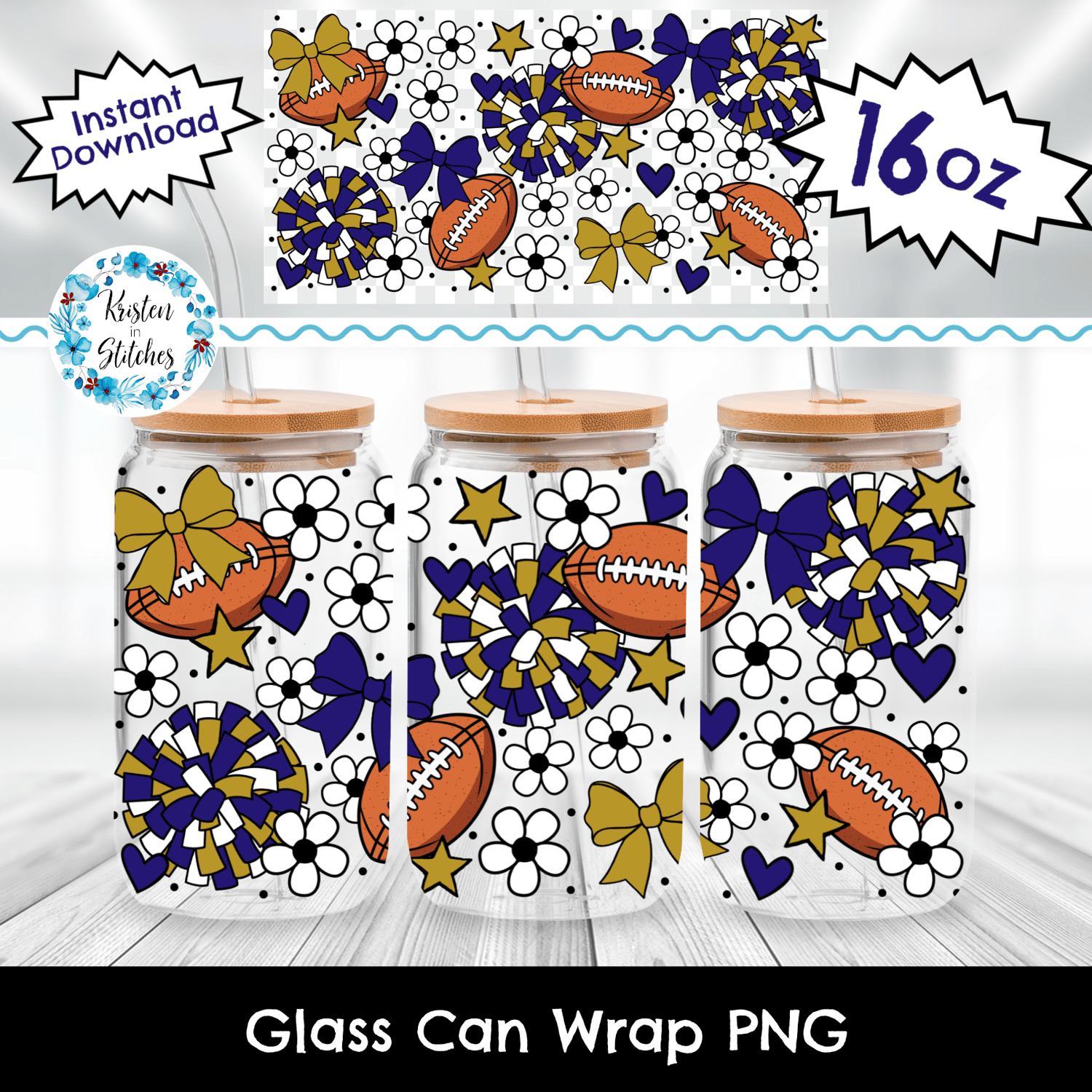 Football Team 16 oz Glass Can Wrap Transparent PNG, Baltimore Ravens Cheer Purple and Gold