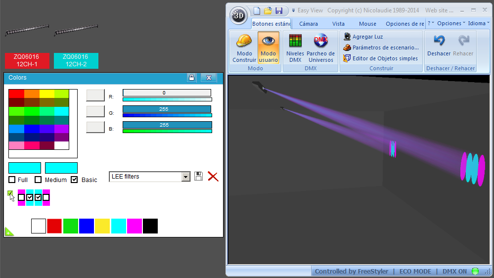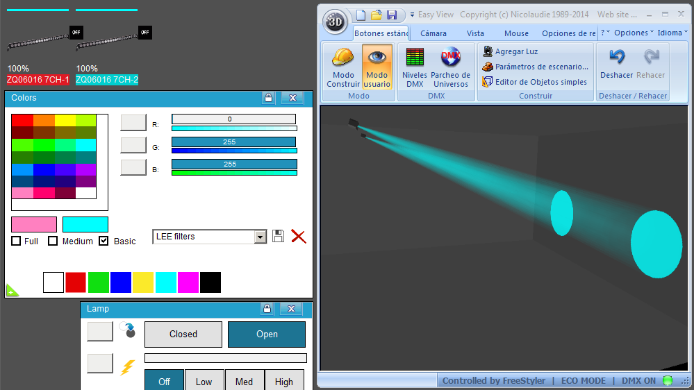 Esta Librería SSL2 está optimizada para trabajar con Magic 3d Easy View. Es decir para ver una representación 3D de las secuencias que estemos realizando con Freestyler, QLC+ o cualquier otro soft que se conecte con Magic 3d.
