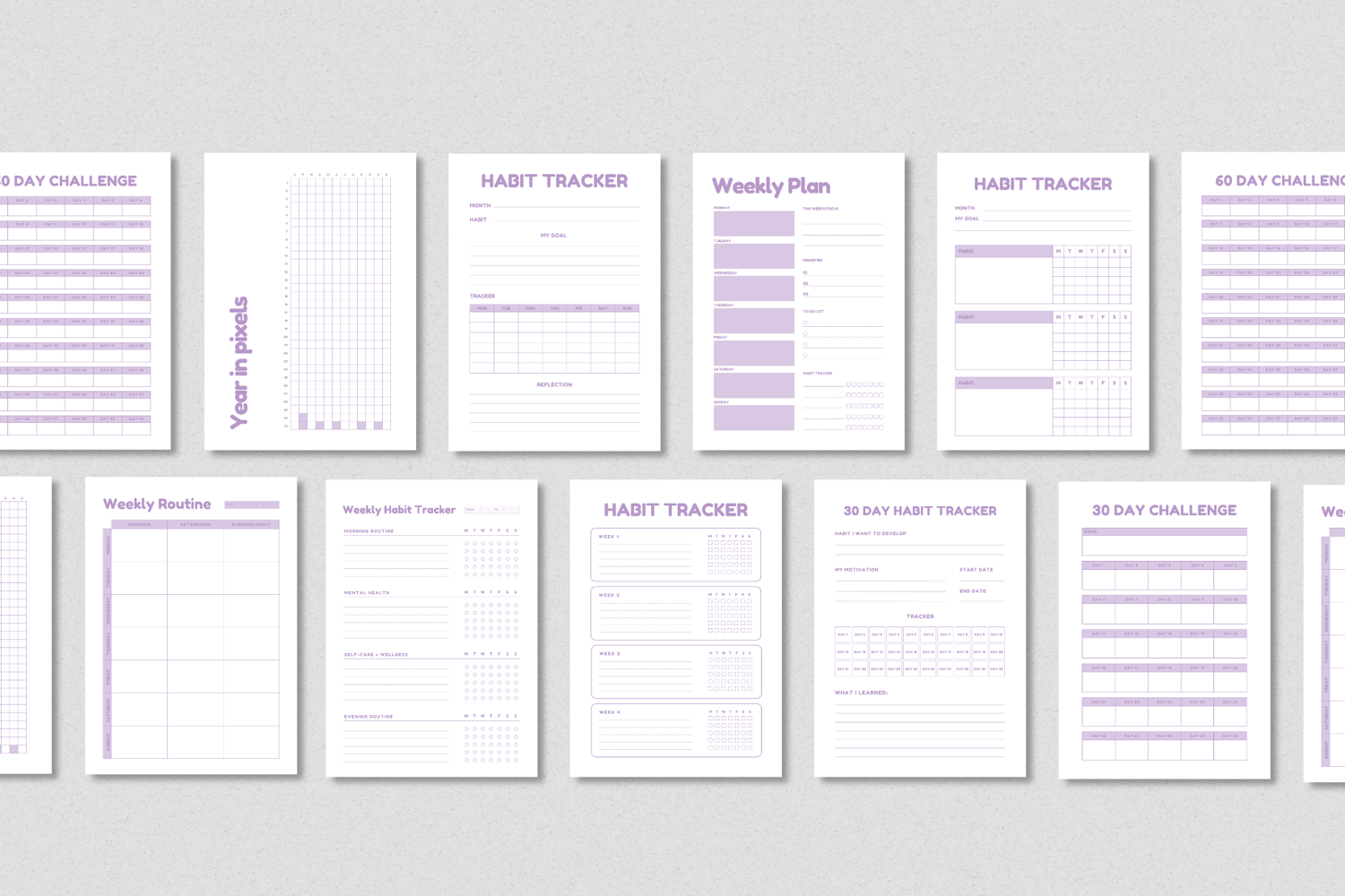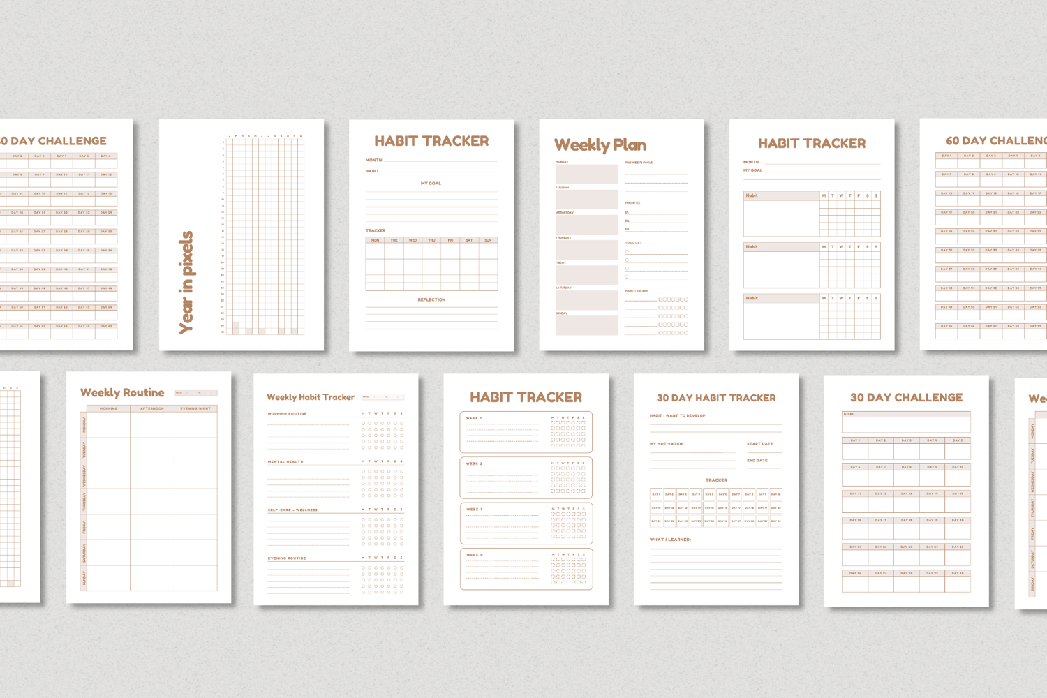 Ready to create a life you love, one habit at a time? Meet the Habit Tracker Bundle – your ultimate toolbox for crushing new habits and mastering your routine. This dynamic collection packs ten powerful templates, each designed to nurture positive change and unlock your limitless potential: