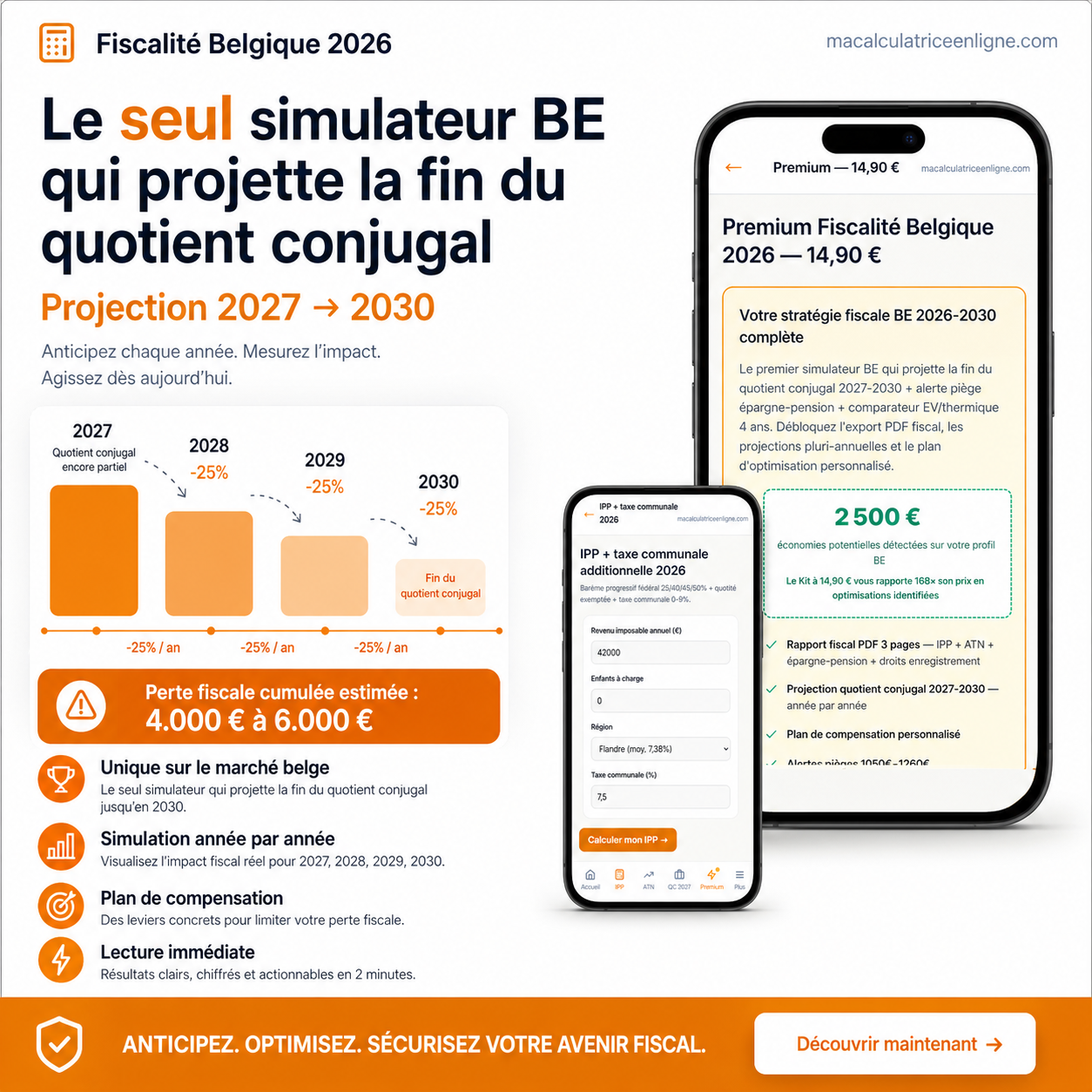 🟧 Le seul simulateur grand public belge qui projette la fin programmée du quotient conjugal 2027-2030