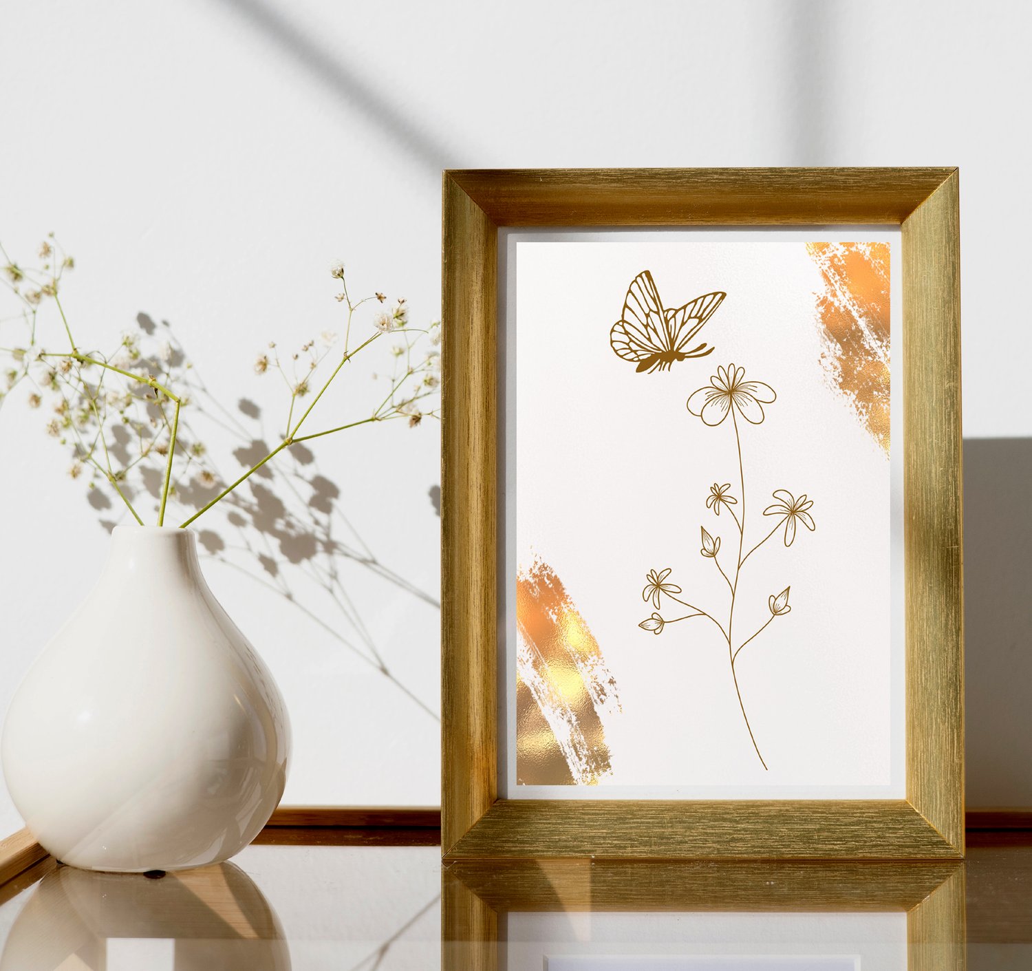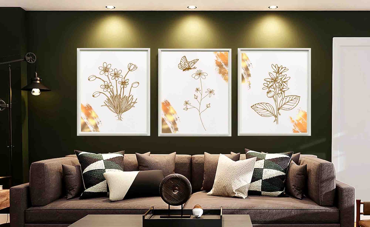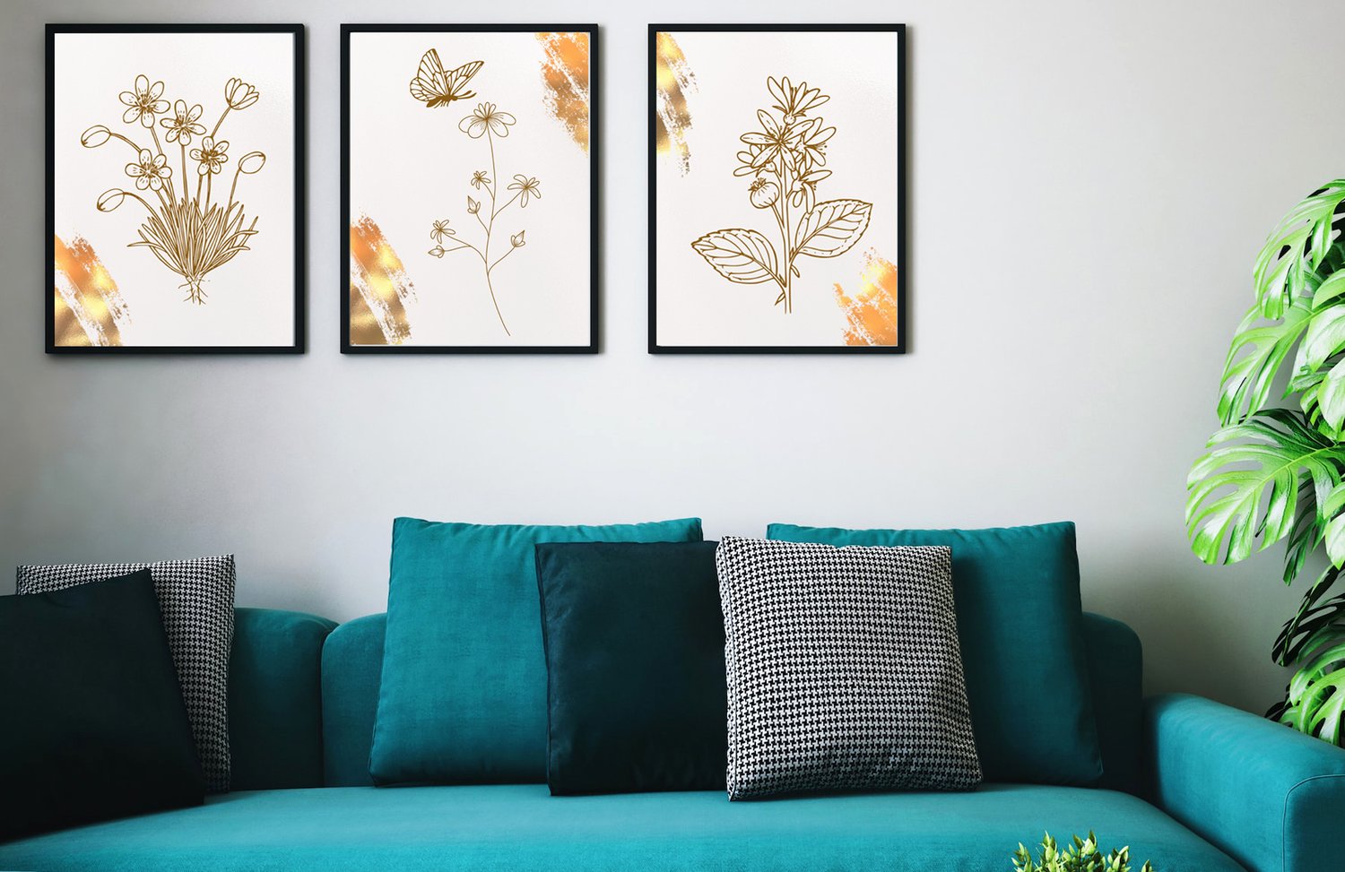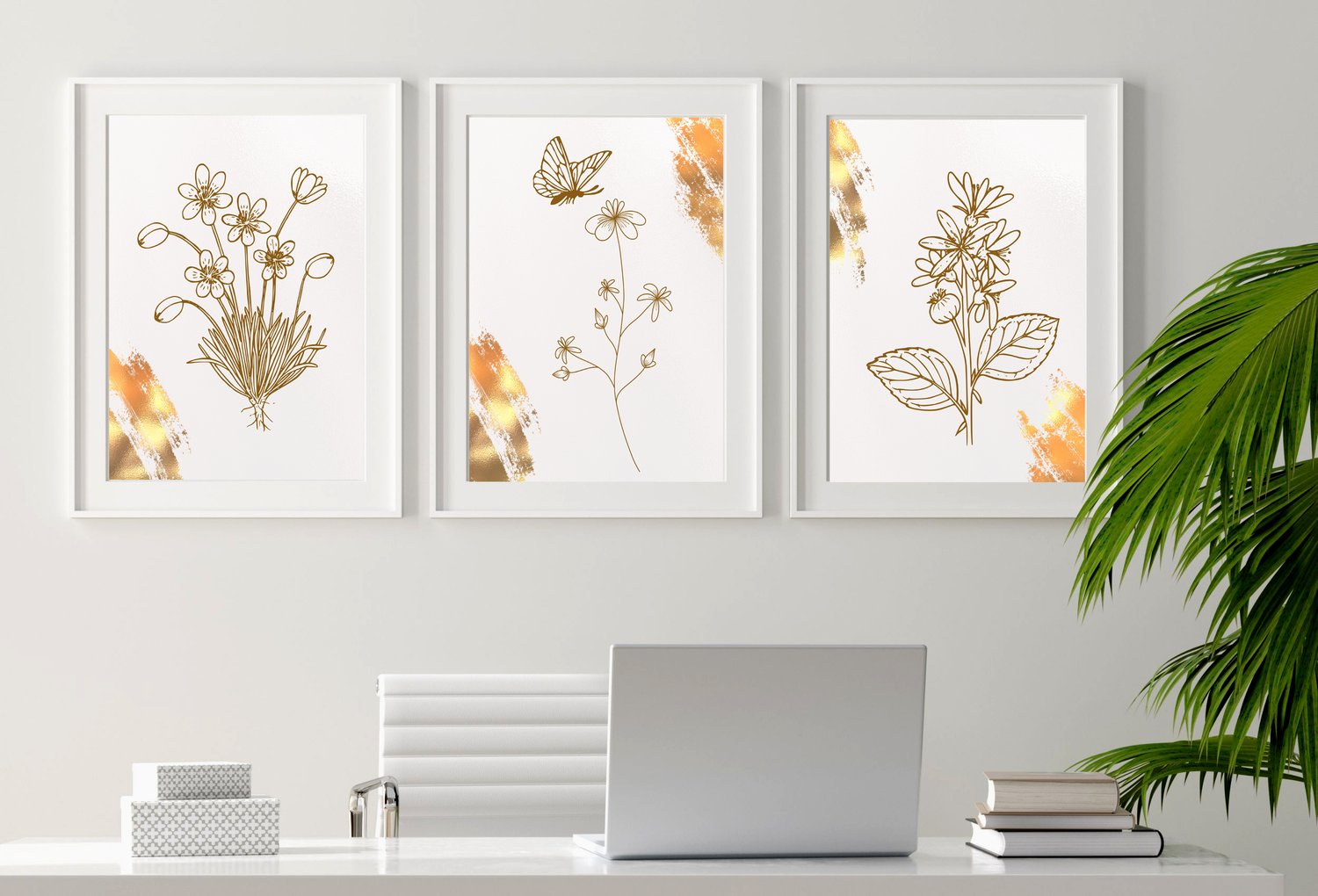 Gold Botanical Wildflower Wall Art Printables, Set of 03, Aesthetic home decor printables, Digital art